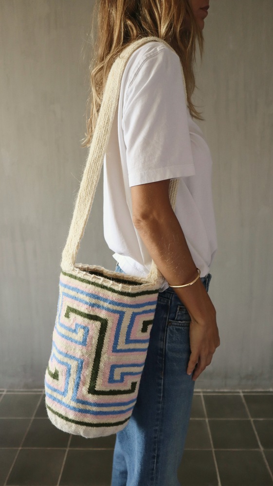 These unique bags are light and easy. They’re not easily found outside of Colombia. Made in the Sierra Nevada de Santa Marta, Colombia by the indigenous Arhuaco.